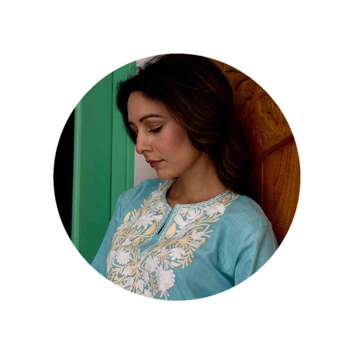 ****“Absolutely in love with this Kashmiri kurti — the delicate embroidery and serene color bring out timeless charm and unmatched grace!"***
