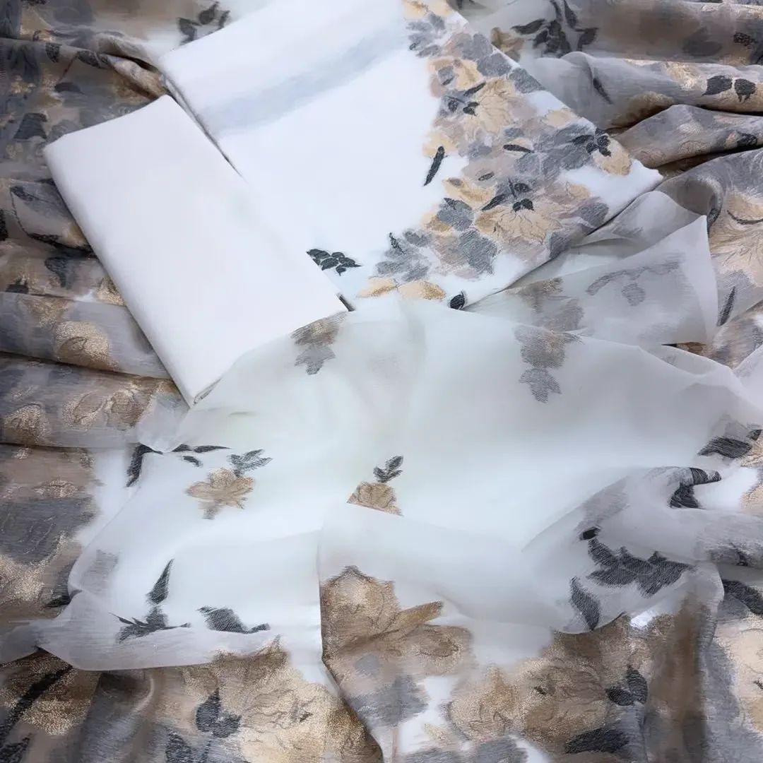 Premium Quality pure silk Branded 3 pics unstitched suit with Kani weaving._